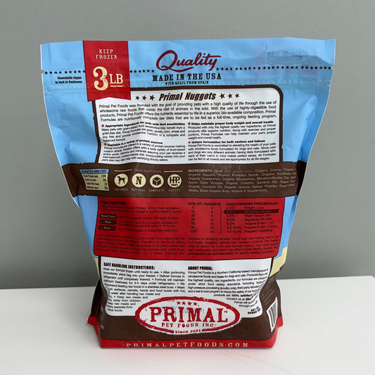 Primal Frozen Canine Nuggets- Quail 3lb