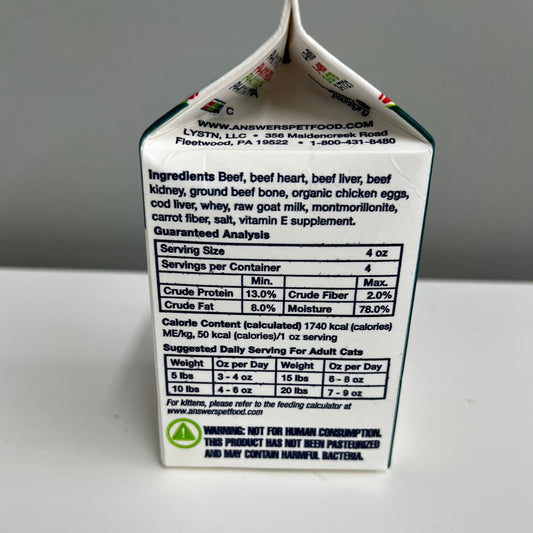 Answers Frozen Detailed Cat Diet- Beef 1lb