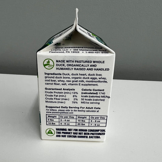 Answers Frozen Detailed Cat Diet- Duck 1lb
