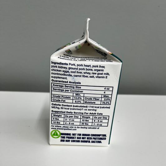 Answers Frozen Detailed Cat Diet- Pork 1lb