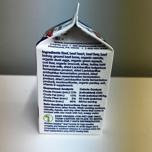 Answers Frozen Detailed Dog Diet- Beef 4lb