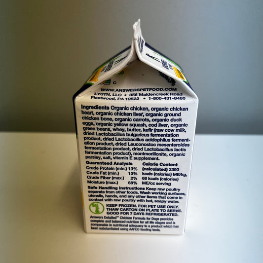 Answers Frozen Detailed Dog Diet- Chicken 4lb