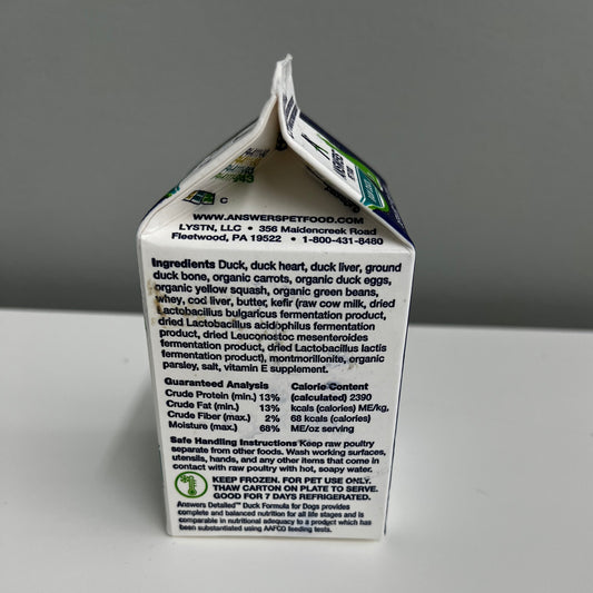 Answers Frozen Detailed Dog Diet- Duck 1lb