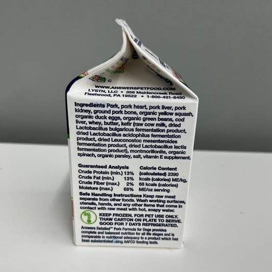 Answers Frozen Detailed Dog Diet- Pork 1lb
