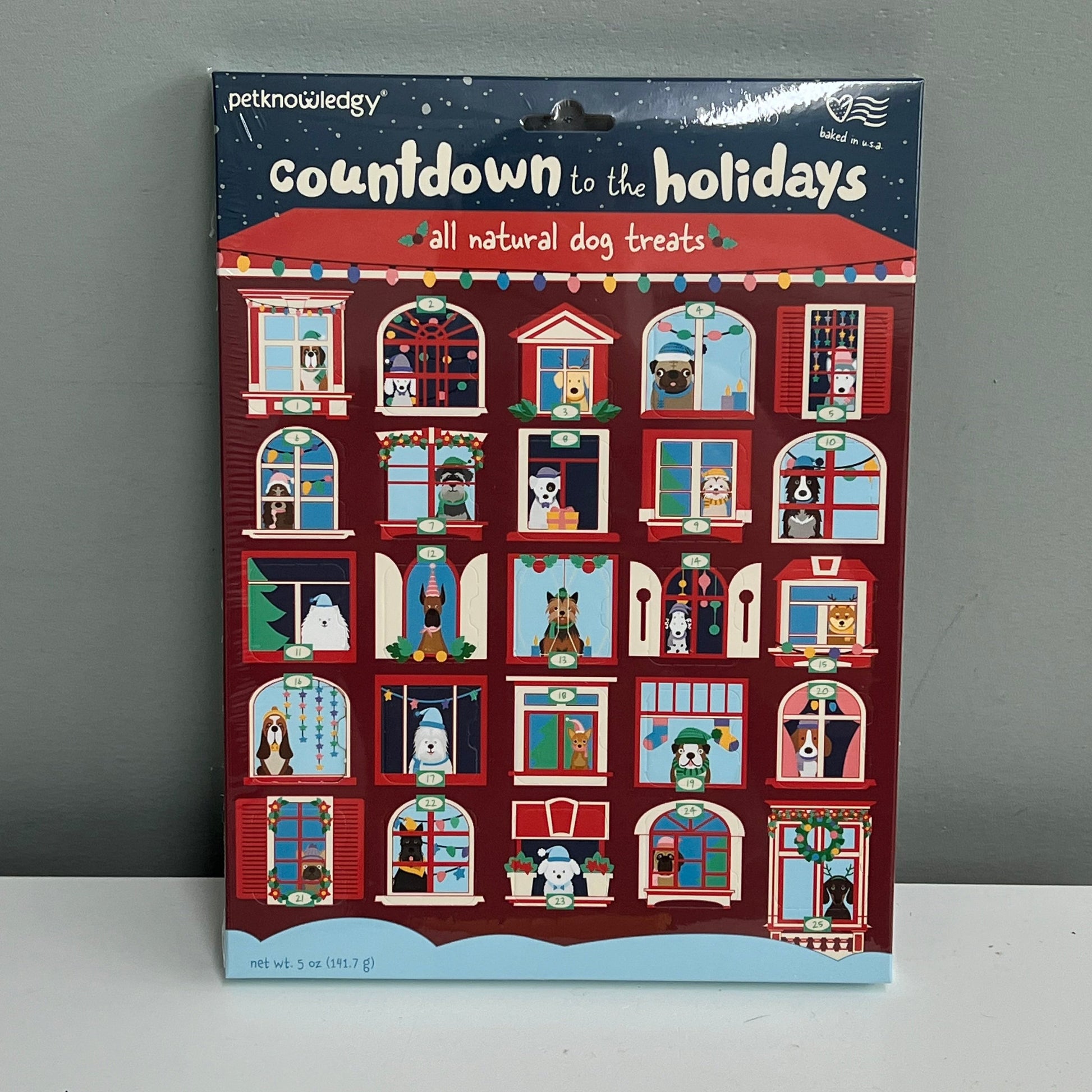 Make this holiday season one to remember with the the Countdown to the Holidays Dog Treat Advent Calendar! This delightful calendar contains 25 dog biscuits, each in its own perforated door and is specially crafted to cater to your dog's taste buds. Every day leading up to Christmas, your pup will have the pleasure of opening a new door to reveal a delicious surprise. Each biscuit-style treat is made with real peanut butter and other high-quality, natural ingredients, free from any harmful additives or preservatives. Treats are hand-baked in the USA in small batches. Filled with 5 oz of delicious treats, the the Countdown to the Holidays Avent Calendar will keep your furry friend entertained for the whole month. And with its festive design, it makes the perfect addition to your holiday decor.