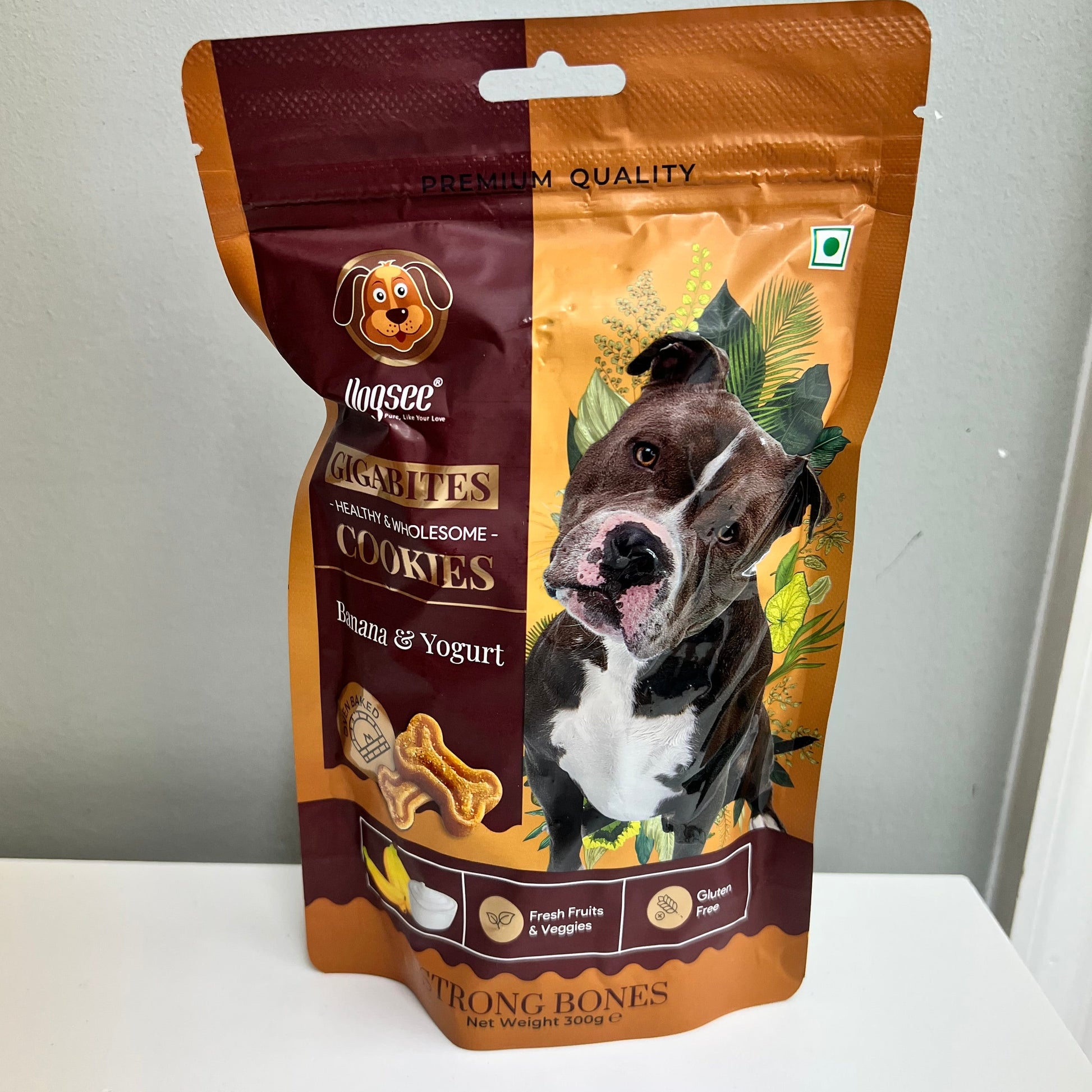 These cookies are made of plain, low-fat yoghurt and fresh, delicious bananas and are high in calcium, potassium, Vitamin B6 & C, and probiotics. A great way to strengthen your pet's bones, improve gut health, and improve its fur and skin. These cookies will satisfy your dog's hungry stomach and provide quality nutrition to help your dog feel better and healthier.