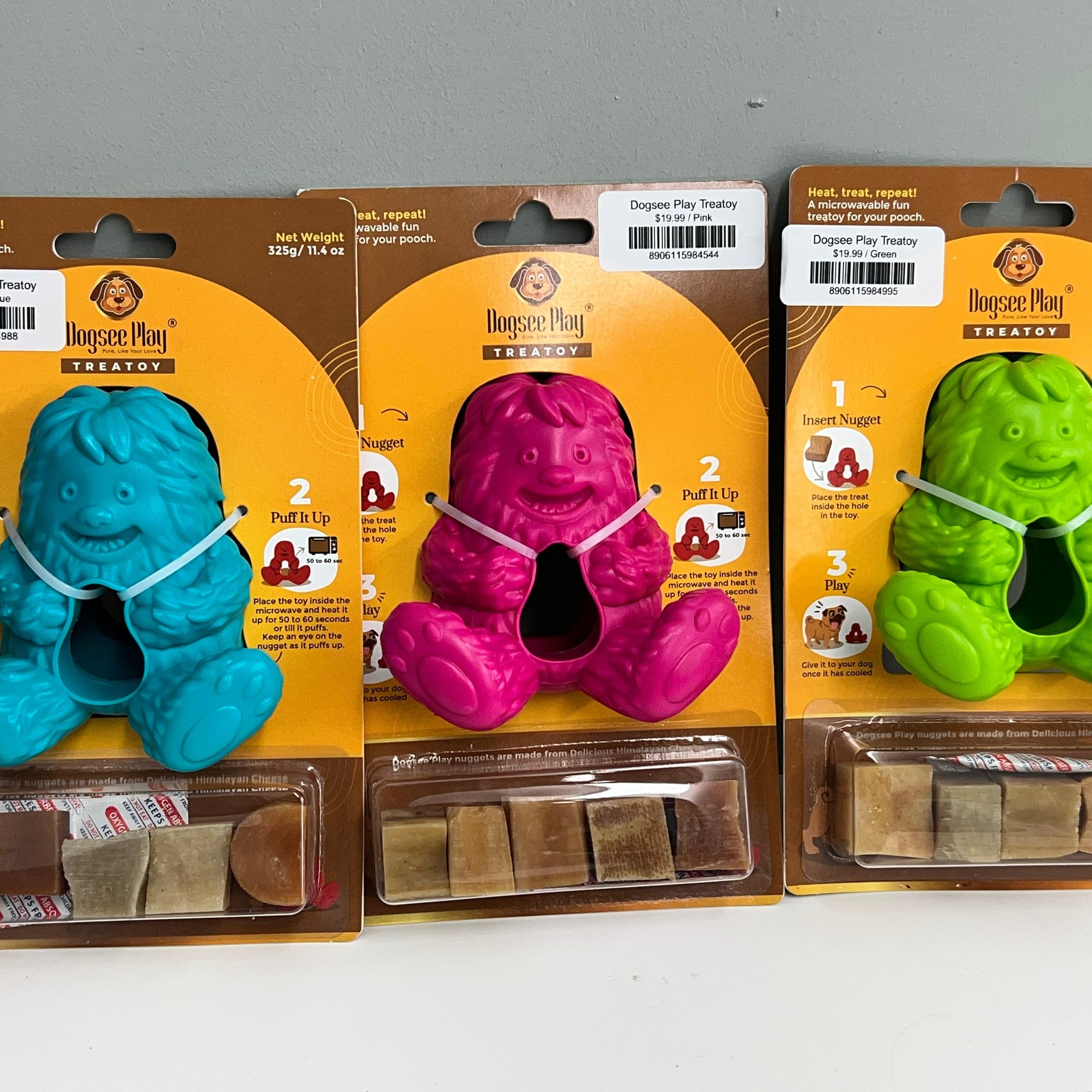 Treat: The Dogsee Treatoy puffed treat is made of 100% natural Himalayan Cheese ingredients. The grain-free Himalayan cheese treat is not just delicious but also a healthy and nutritious treat. It is also allergy safe as it does not contain grains or gluten of any kind.