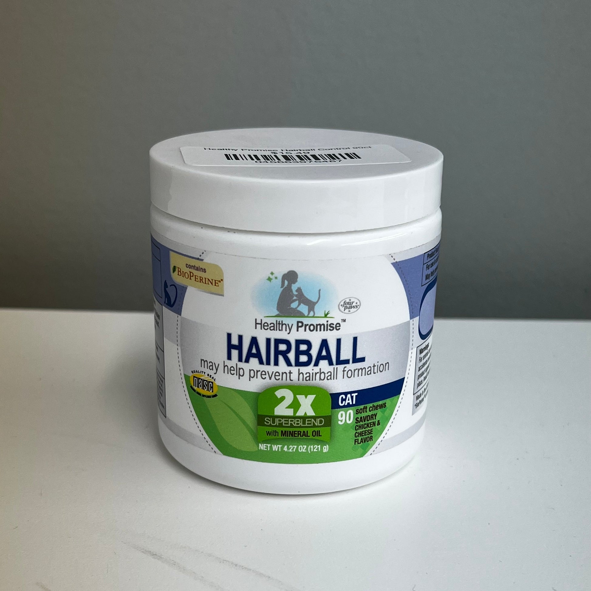 - Hairball control supplements feature a 2x SuperBlend containing Mineral Oil and BioPerine