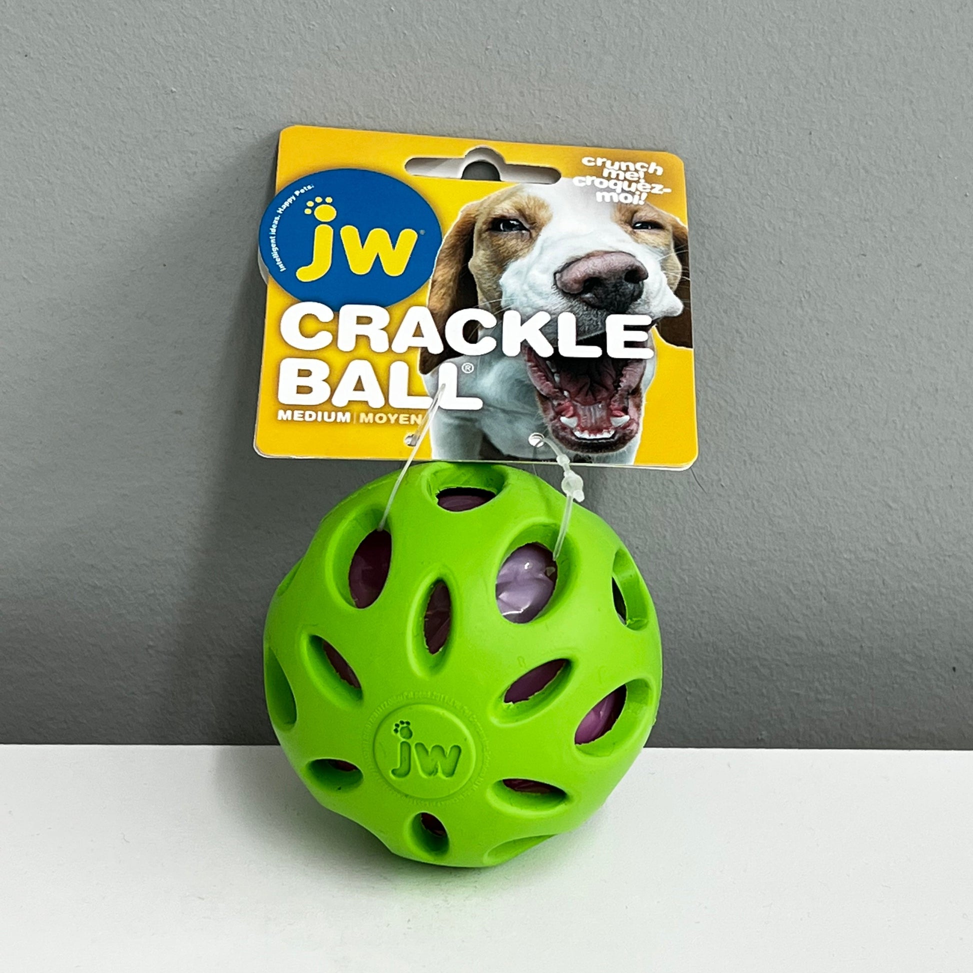 JW Pet Crackle Heads Ball Dog Toys provide a delightful crackle and crunch with a crunchy bottle material protected by a durable rubber ball with holes for easy grip. Featuring long-lasting, thick, durable rubber, this toy is perfect for exciting games of toss and fetch.