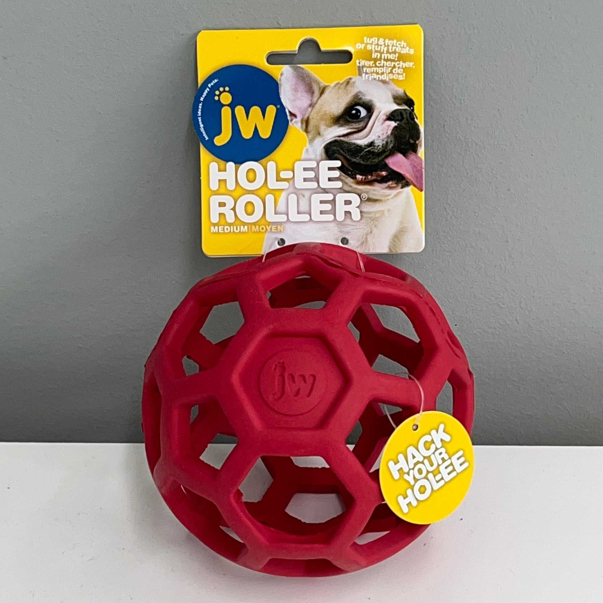 JW Pet Hol-ee Roller is a durable, chewy, bouncing toy that lasts and lasts! Even puppies will choose the Hol-ee Roller over other dog toys as their favorite. For more aggressive chewers you may want to consider the Hol-ee Mol-ee Extreme.