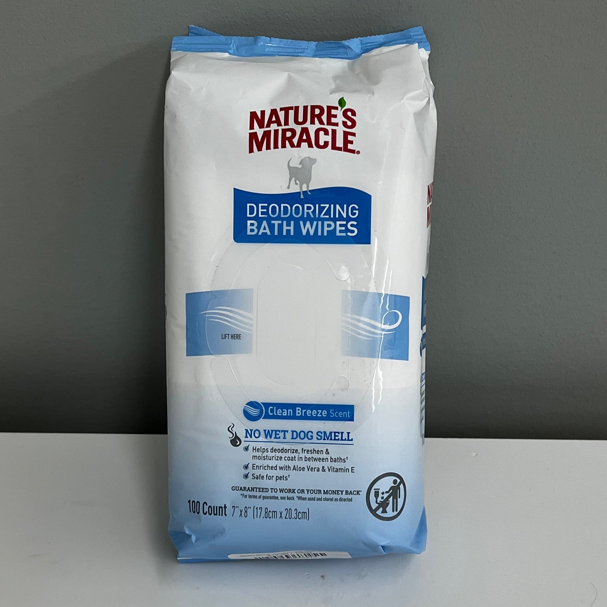 Natures Miracle Deodorizing Bath Wipes for Dogs Clean Breeze Scent safely eliminates tough pet odors. Great for quick clean-ups and between bath refreshing. The alcohol-free formula is mild enough for everyday use.