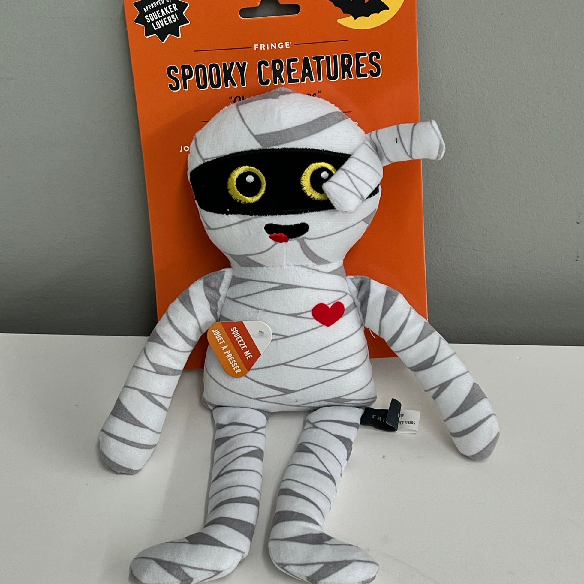 PetShop by Fringe Studio's “Oh My Gauze” plush toy is perfect for playtime, anytime. Made with 2 super loud squeakers and stuffed with fluff, this monster is wrapped and ready for lots of play.