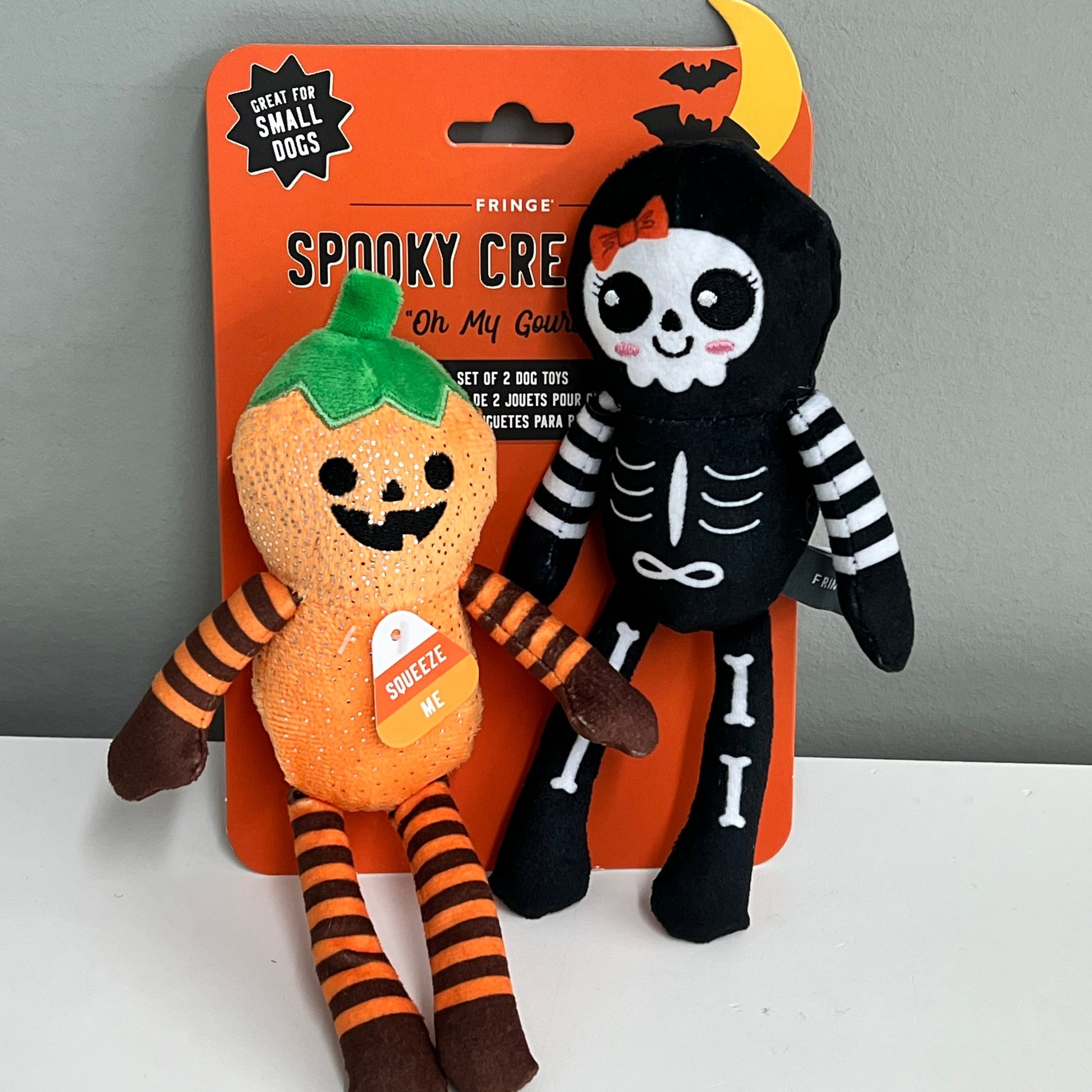 PetShop by Fringe Studio's “Oh My Gourd!” 2 piece plush toy set is perfect for playtime, anytime. Made with a super loud squeaker and crazy crinkle paper in each toy, this set was designed with interactive play in mind. Whether you squeak, crinkle, or toss them, this duo is sure to stir up some fun for your pup.