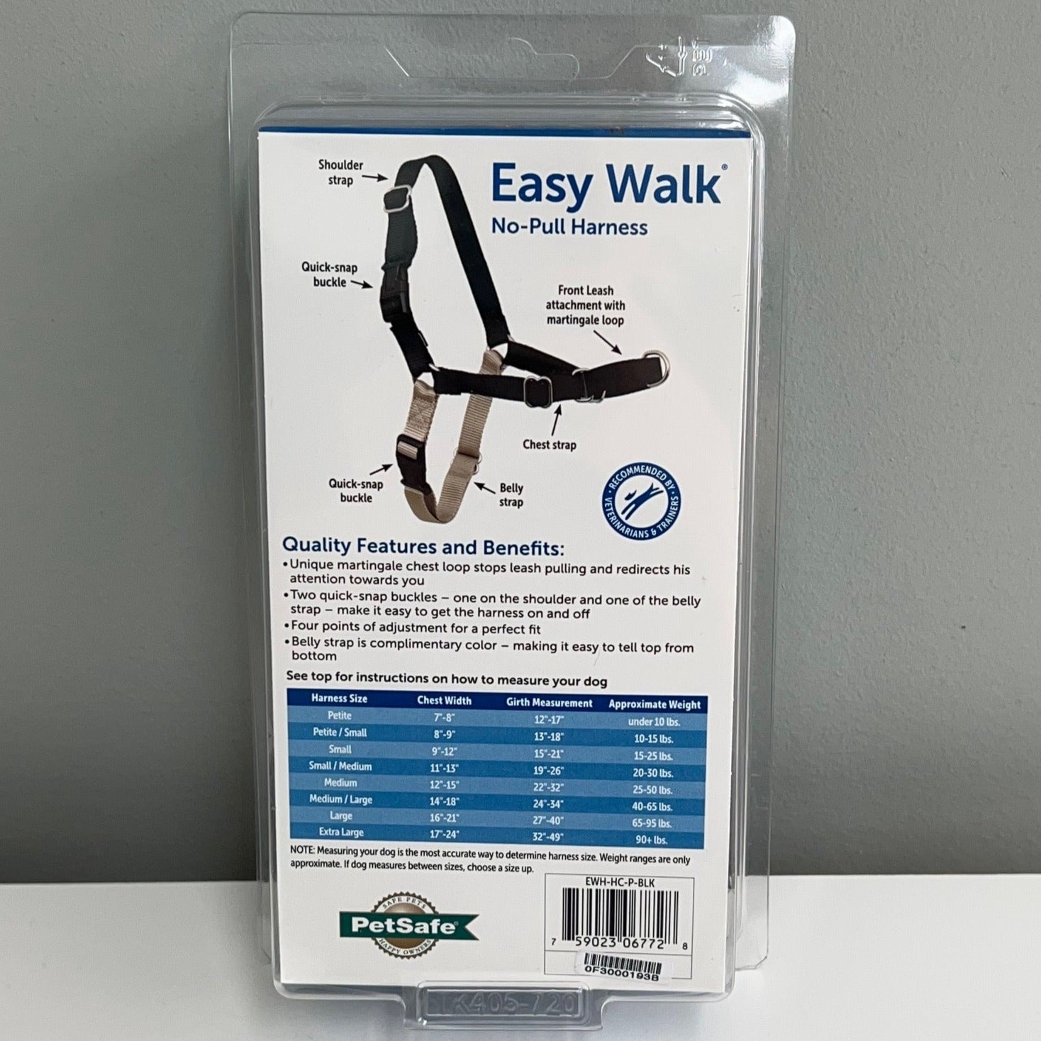 The Easy Walk Harness is designed to gently discourage your dog from pulling while walking on a leash.