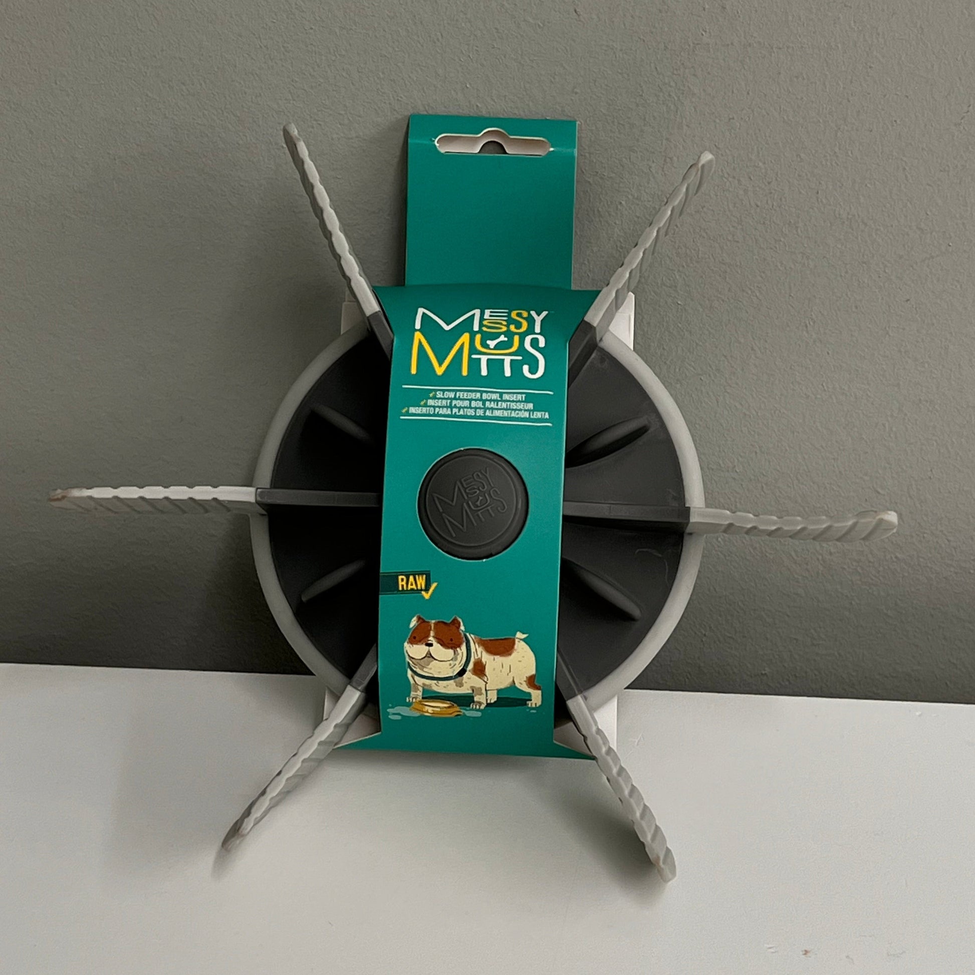 Stimulate your mutt…while slowing their intake. Transform your existing dog bowl into a slow feeder in one simple step. The wings bend to create multiple compartments around food, encouraging your dog (or cat) to 'hunt' for each bite. Slower feeding can help improve digestion and reduce bloating.