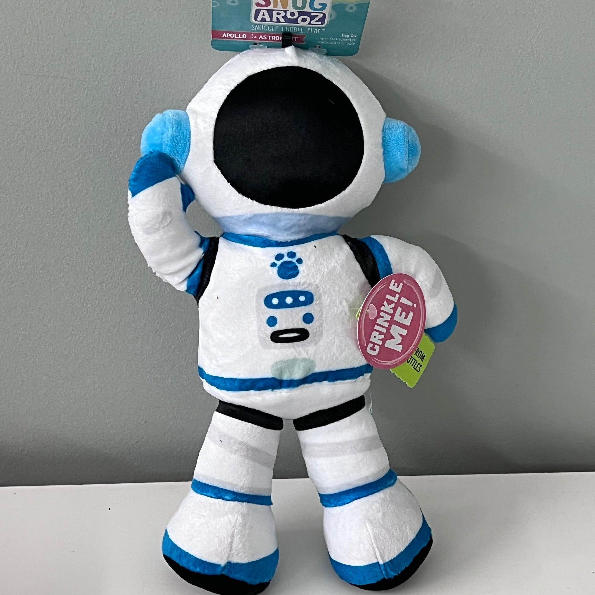 Take your beloved pet's playtime to stellar new heights with Apollo the Astronaut, a toy that's out of this world! Set your pup off on an enthralling space odyssey with this environmentally conscious playmate, meticulously crafted from recycled water bottles. Apollo comes alive with exciting sounds, featuring an integrated squeaker and enticing crinkle material for a galaxy of interactive fun. Measuring an impressive 10 inches, this toy is perfectly sized for an epic cosmic journey, promising hours of adventurous and sustainable play. Prepare for a universe of enjoyment as your furry friend explores the final frontier with Apollo the Astronaut! All Snugarooz plush toys are made from recycled water bottles.