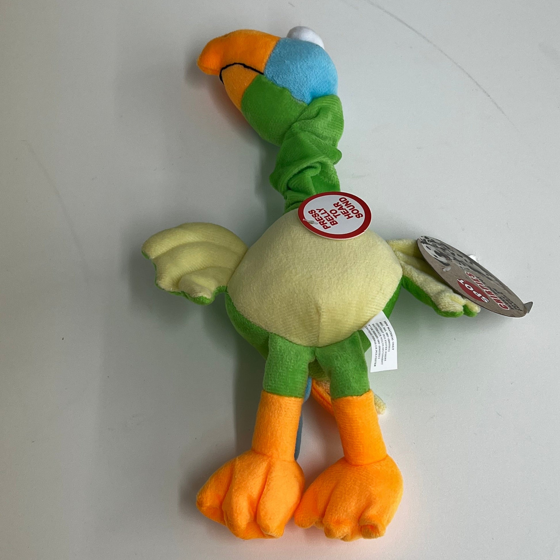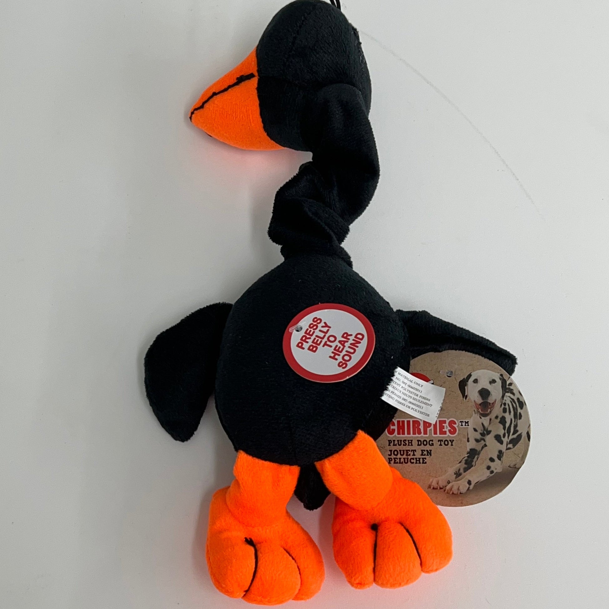 The Chirpies Plush Dog Toy by Ethical is a great toy for any dog who loves to play with plush toys. These charming birds can sing two pre-programmed songs. The assorted Chirpies dog toys have an electronic chirping noise in the belly of each plush toy that activates when squeezed. The toy does not have any squeakers.