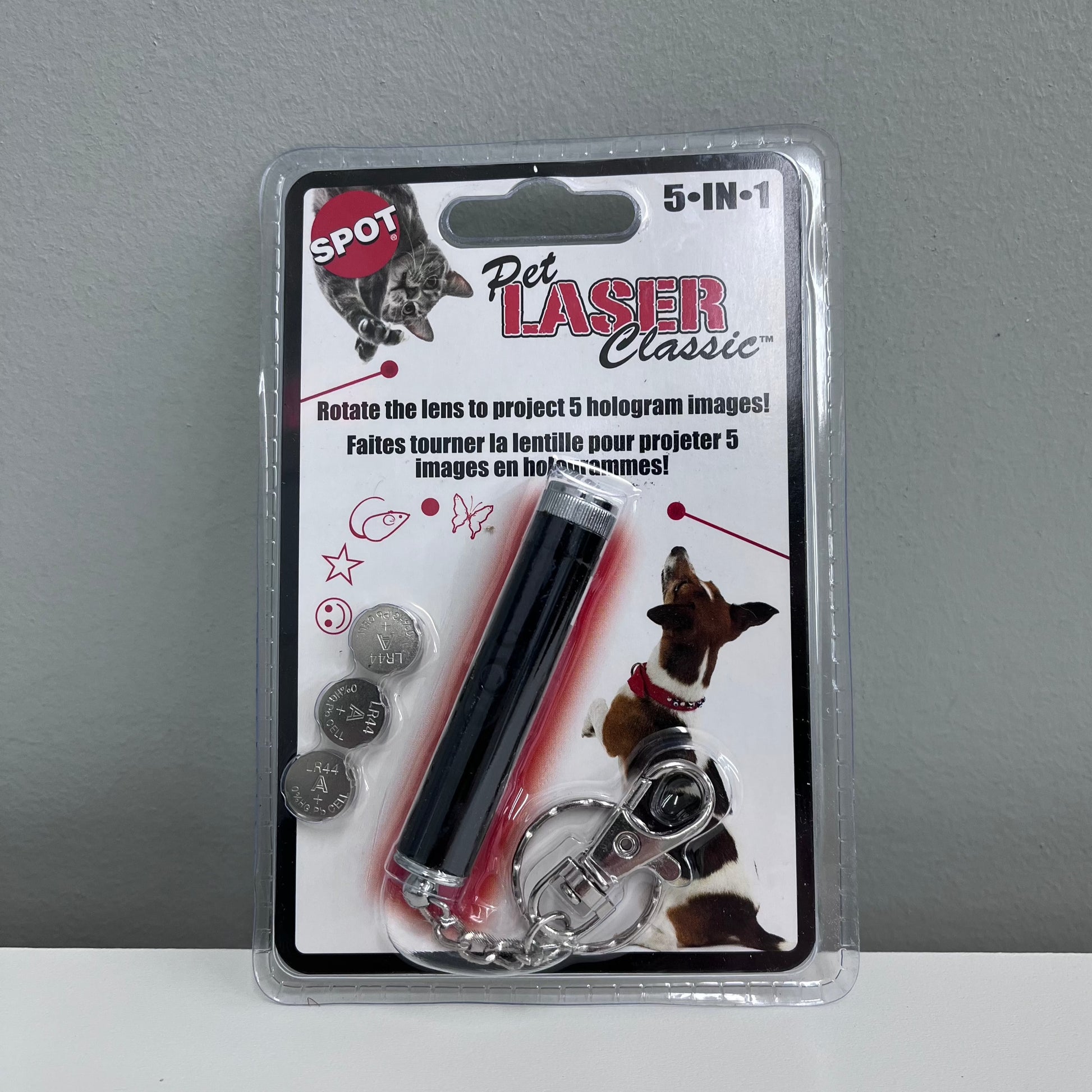 Don't settle for an ordinary laser pointer when you can have the Ethical Pet Spot Laser Classic 5-In-1 Dog & Cat Toy. This cool laser projects five different laser hologram images that will delight your furry friends. Simply rotate the lens to change holograms and voila! Your fur-bud can get excited over a whole new image to chase! Cats and dogs alike go absolutely batty for this laser toy. Comes with three replaceable batteries and a handy keychain clasp holder.
