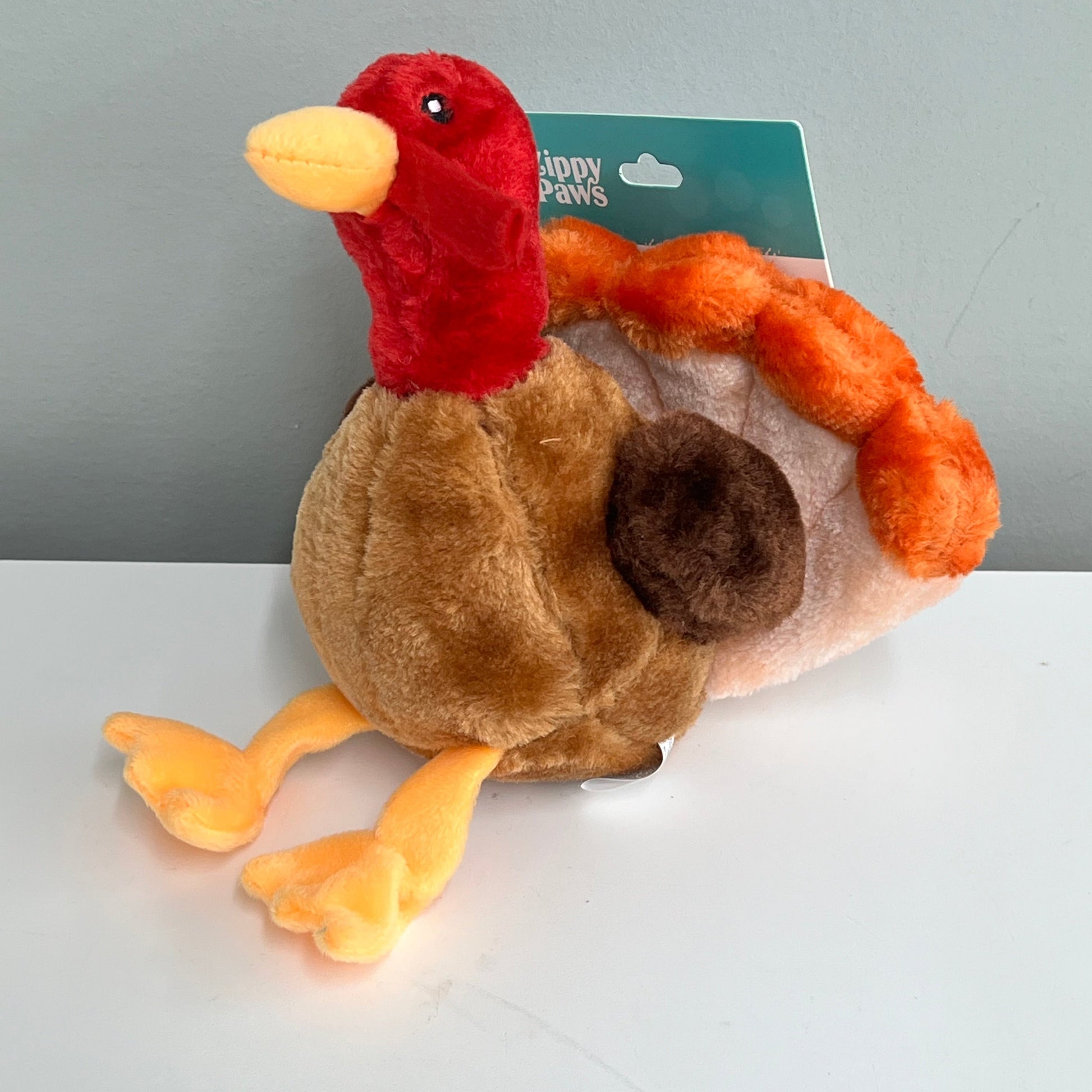 Share your love of the fall holiday season with Tucker the Turkey. Tucker the stuffed turkey features a crinkly fan of tail feathers and a blaster squeaker that are guaranteed to keep your dog strutting their stuff all year long!